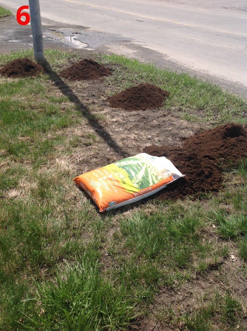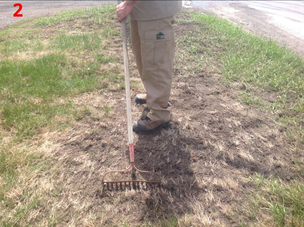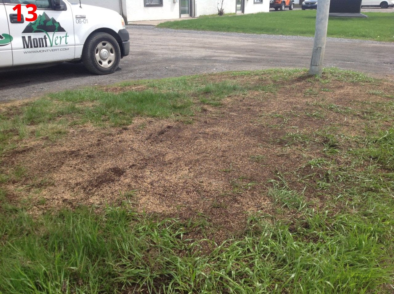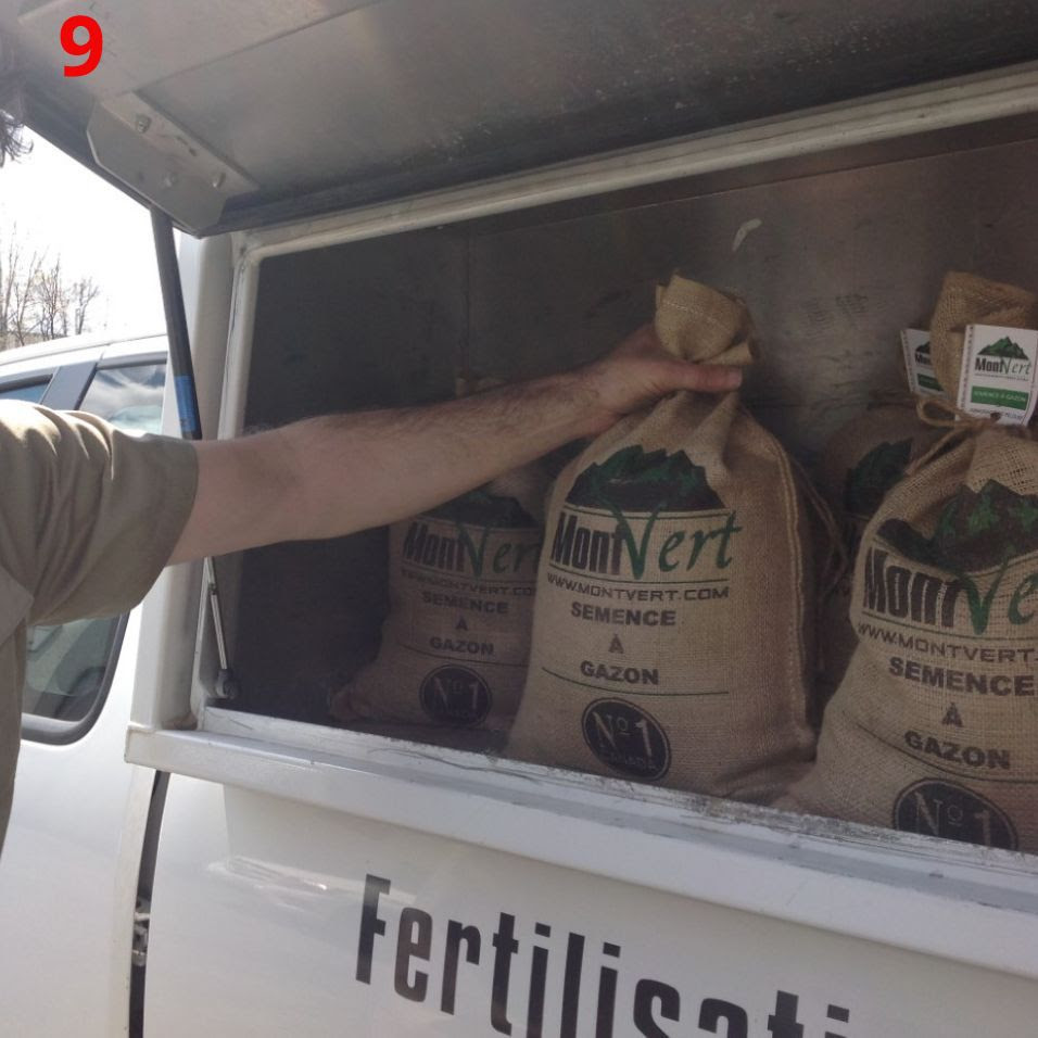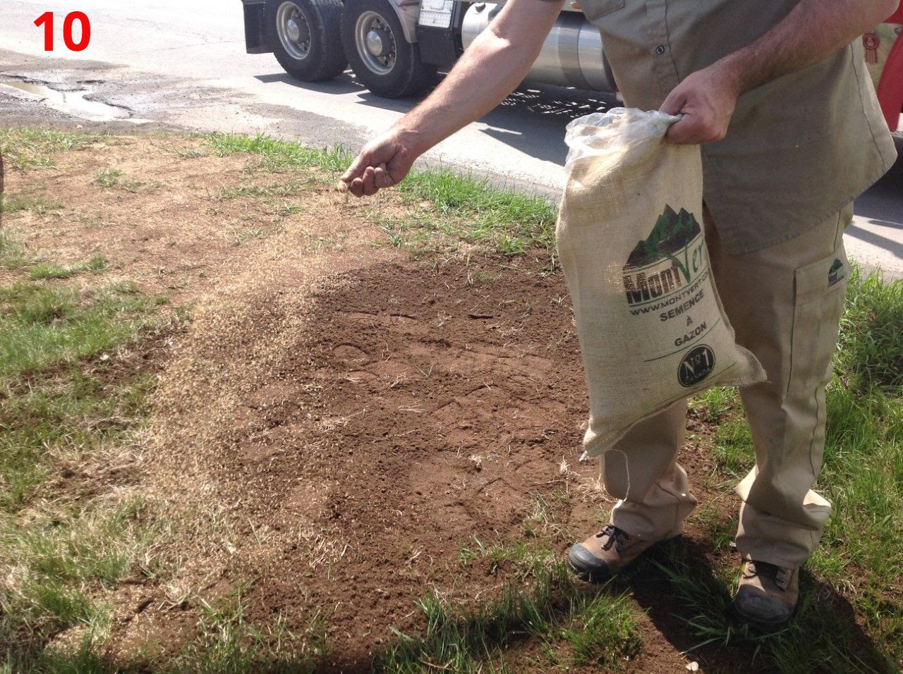 La zone prête à réparer nous pouvons y déposer de la semence. Sachez que les techniciens ont toujours des sacs de semence dans leur camion. Vous pouvez les acheter directement du technicien ou via le site de MontVert.