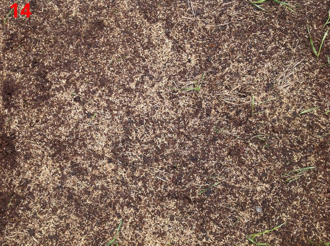 Épandez de la semence uniformément, mais pas trop. Nous allons en épandre à nouveau dans 10 jours.